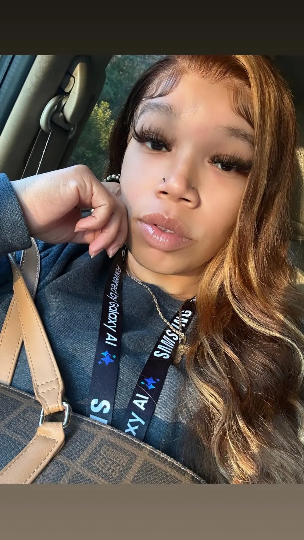 Model showcasing EuxmeHair highlight brown lace wig’s realistic parting, hairline details, and face-framing layers.
