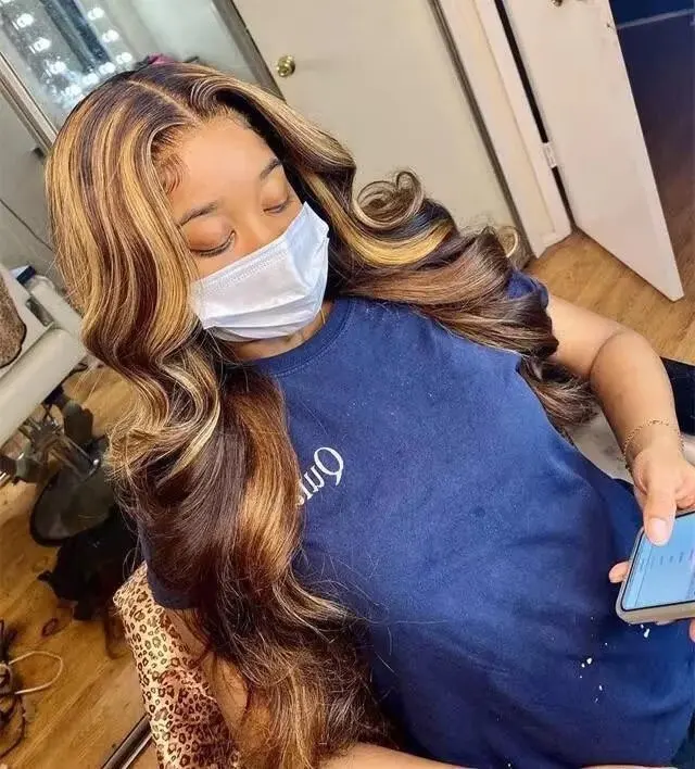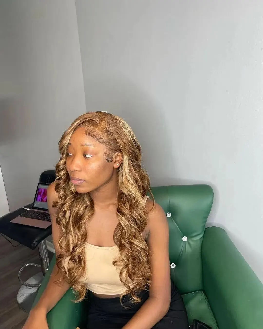 EuxmeHair 13×6 Lace Front Wig – Brown with Honey Blonde Highlights (P2/30), Body Wave Style