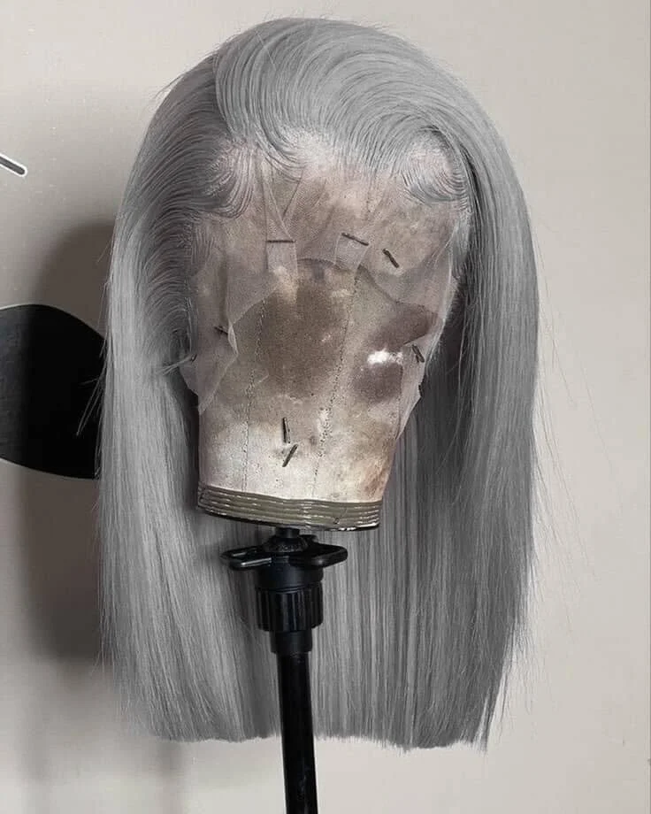 EuxmeHair 13x4 Gray Straight Short Bob Wig – Glueless Lace Wig with Pre-Plucked Natural Hairline