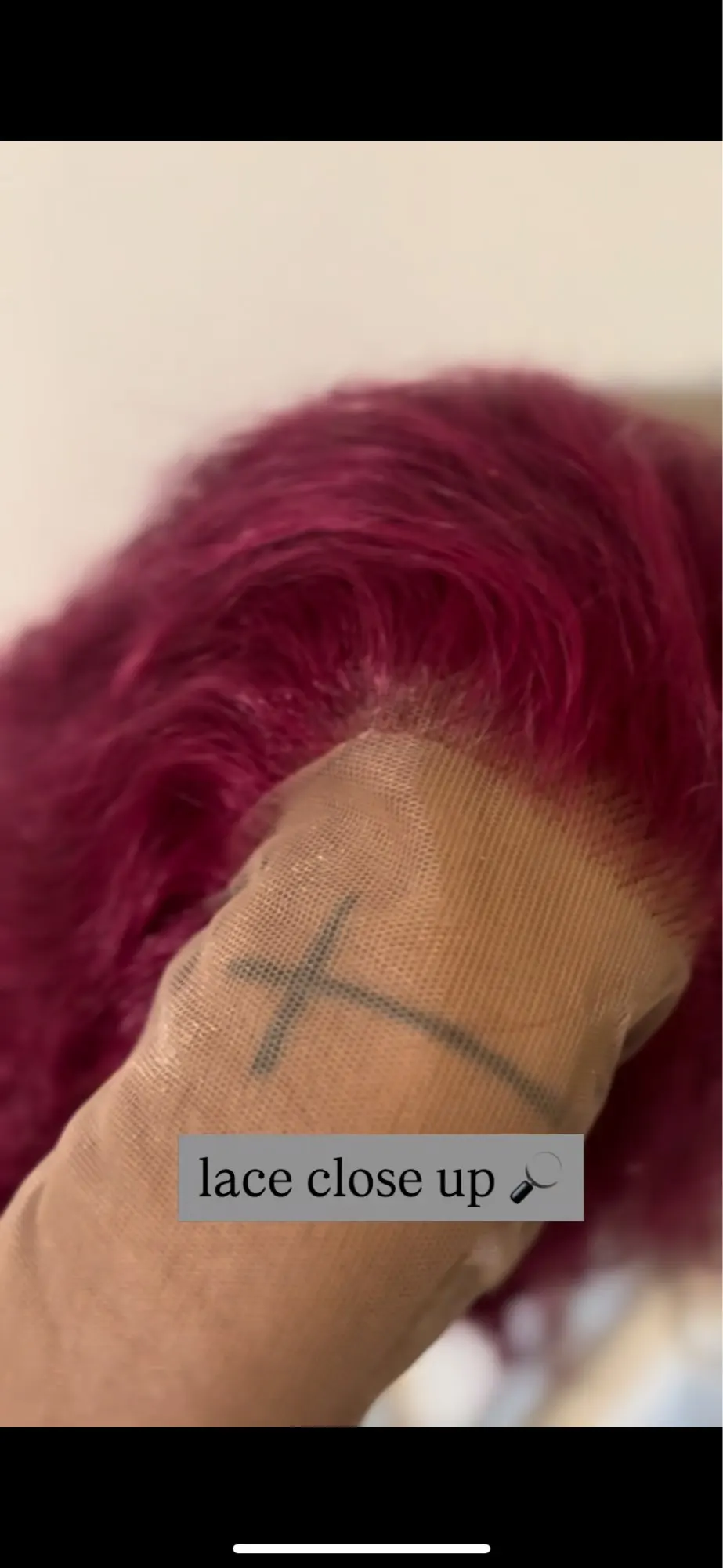 Close-up of pre-plucked natural hairline on 99J burgundy full lace deep wave wig for realistic finish.