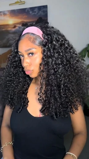 EuxmeHair Headband Wig – Deep Wave Natural Color | Bouncy, Beginner-Friendly Wig for Daily Wear