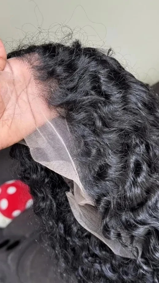 Close-up of HD lace blending seamlessly with the skin, showcasing its thin and transparent texture.