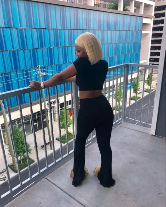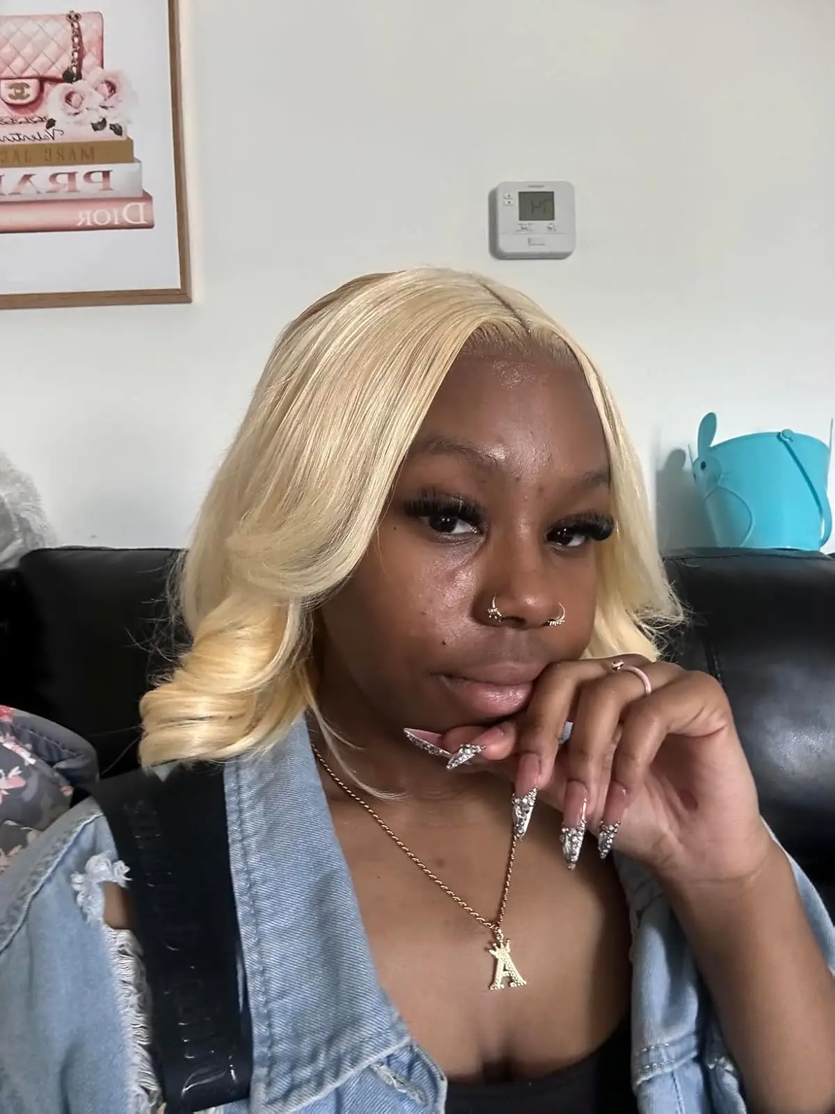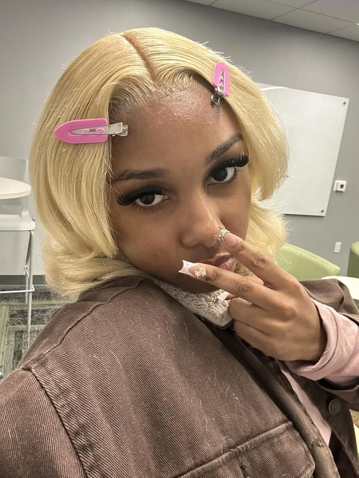 Real model showcase of 613 blonde bob wig styled in middle part, featuring sleek straight texture, HD lace front, and vibrant color finish.