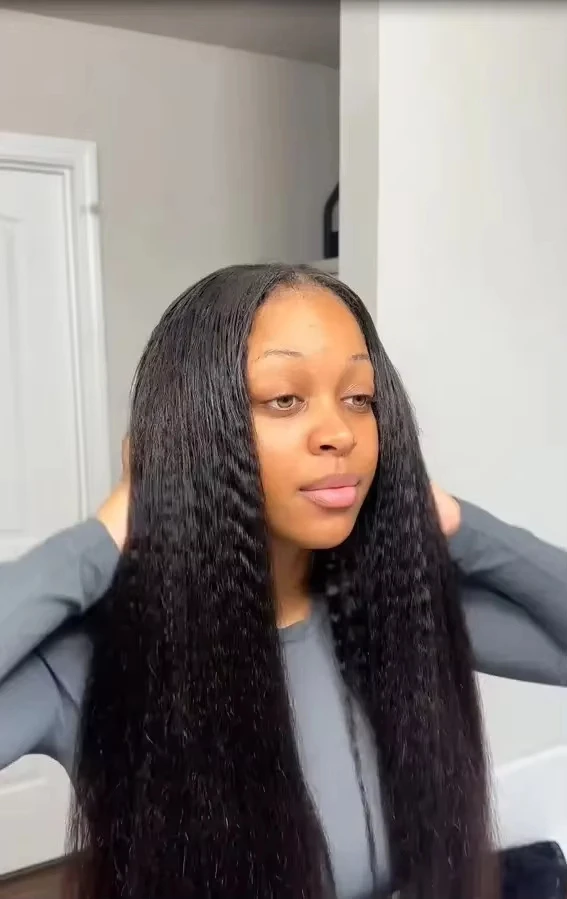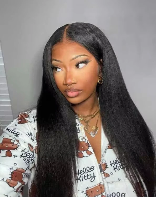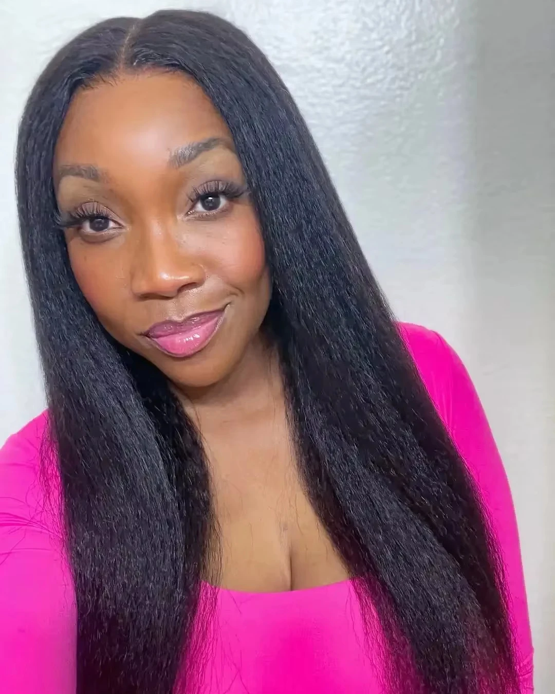 EuxmeHair 6x6 Glueless Kinky Straight Wig – Natural Color, Pre-Plucked Hairline for Effortless Everyday Style