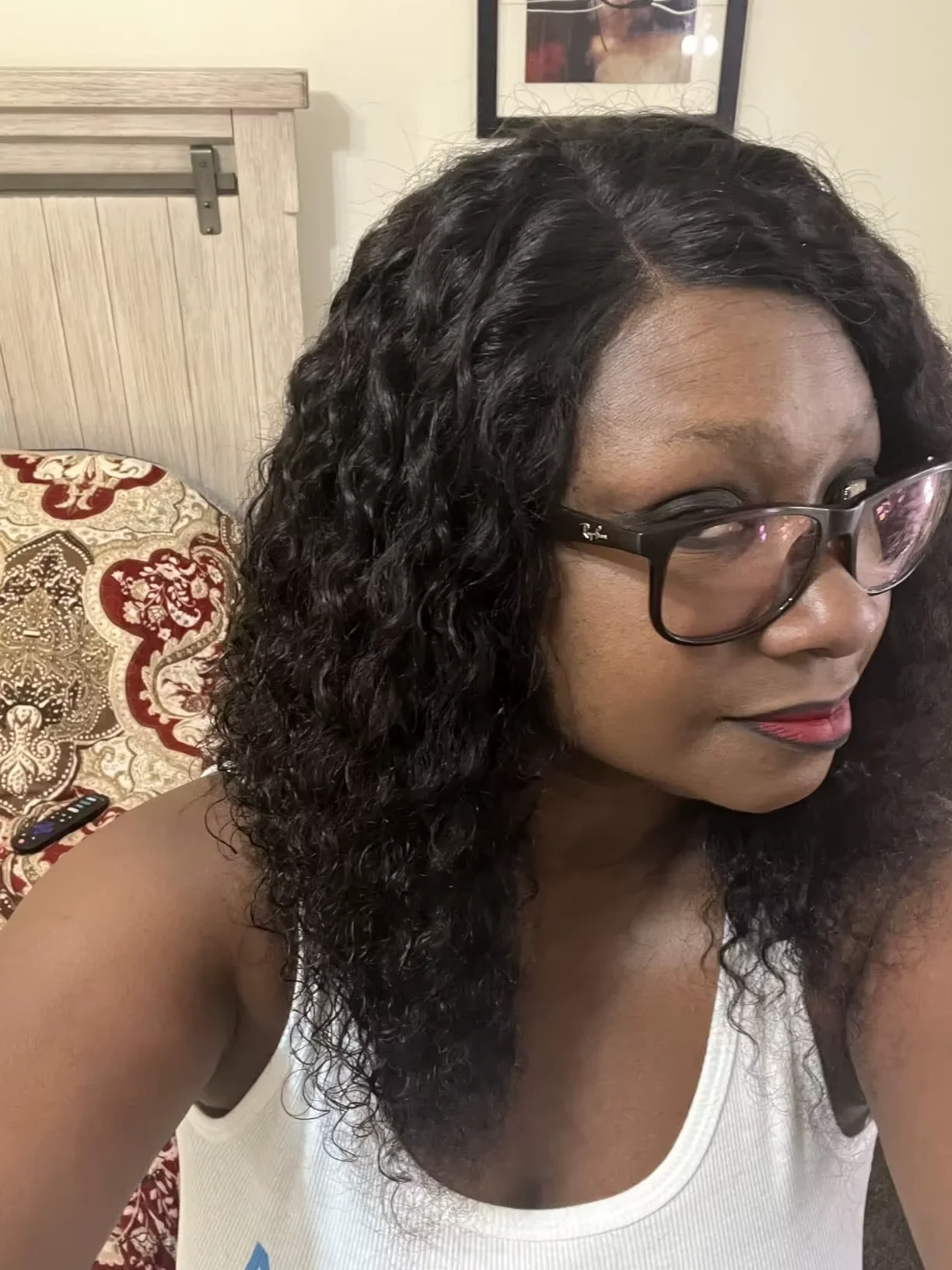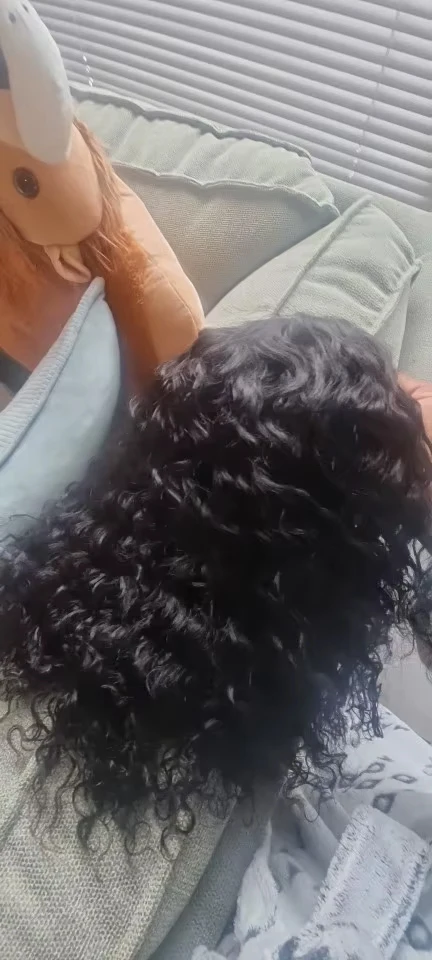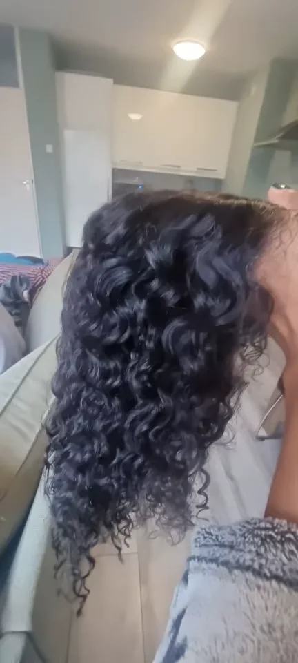 EuxmeHair Jerry Curl 6x6 bob wig in natural color styled glueless and worn indoors.