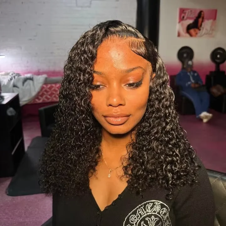 Close-up of natural hairline and curl pattern on Jerry Curl bob wig with 6x6 lace.