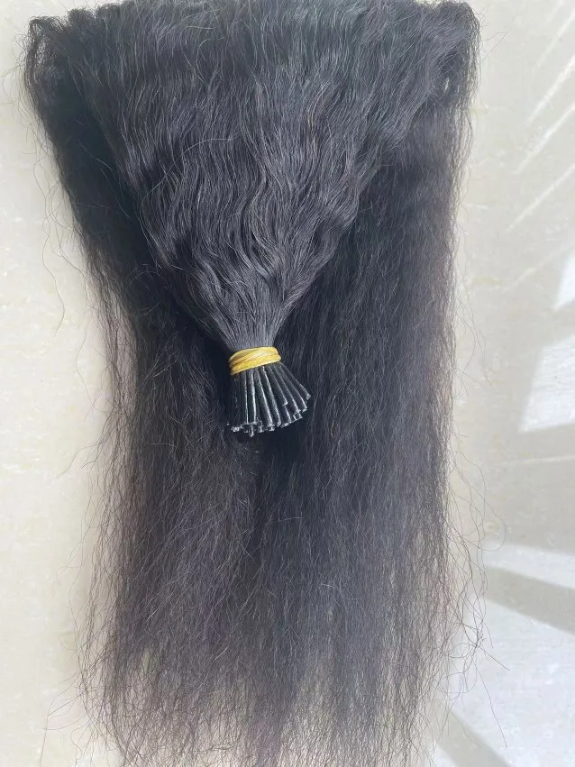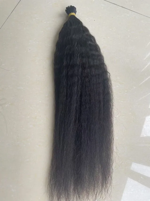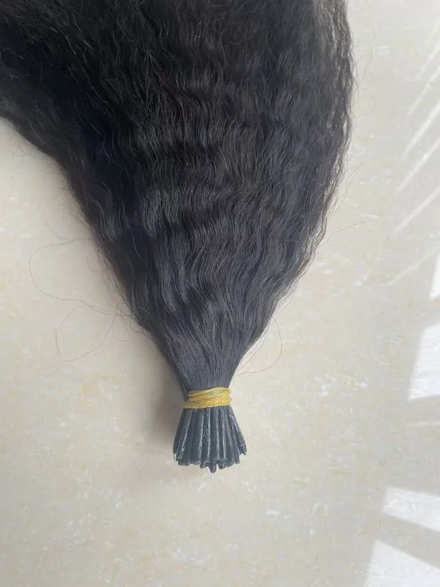 EuxmeHair I Tip Hair Extensions – Kinky Straight, Natural Color, 100% Human Hair