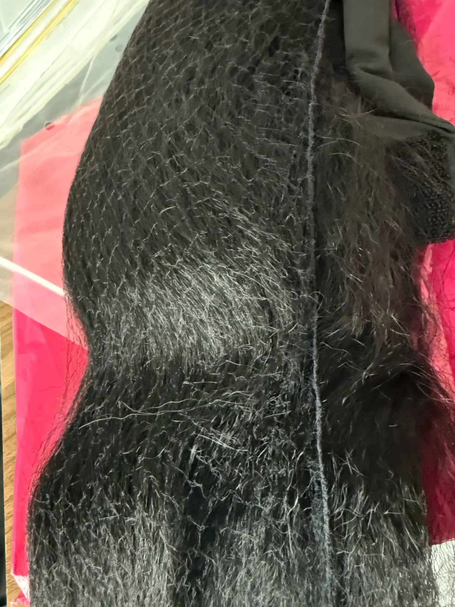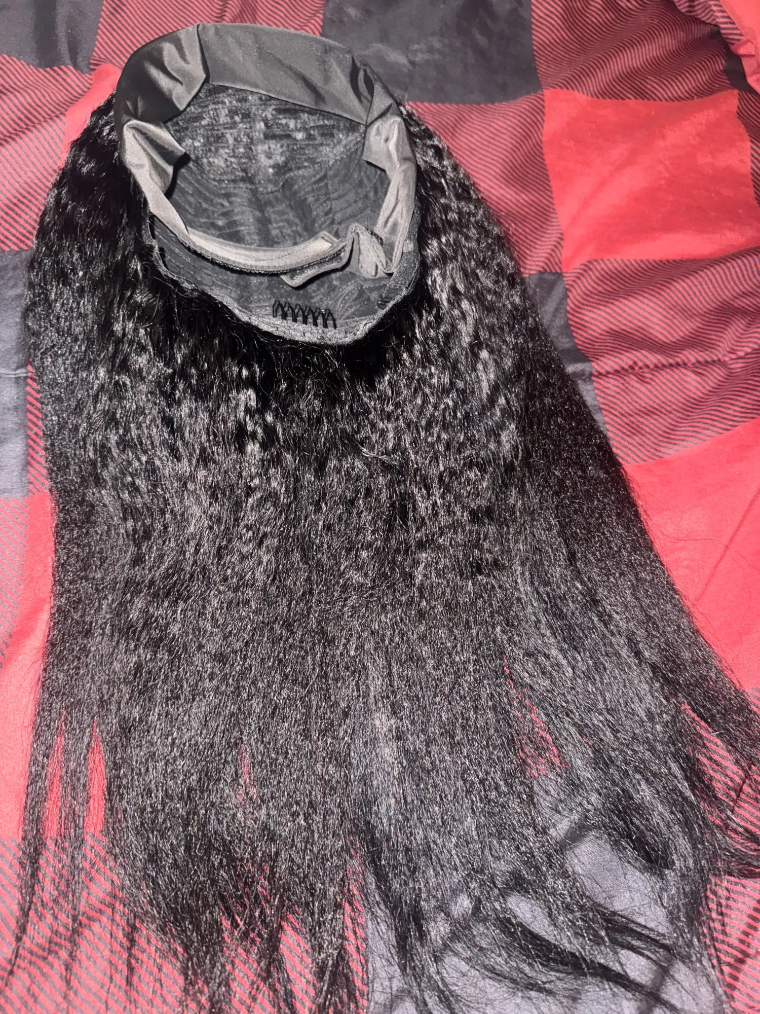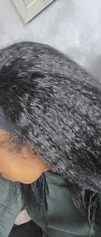 Step-by-step installation guide of kinky straight headband wig: from natural hair prep to secure velcro finish.