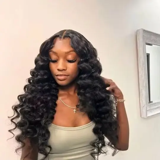 Model wearing EuxmeHair Loose Wave Wig with pre-plucked natural hairline, HD transparent lace, and baby hair around.