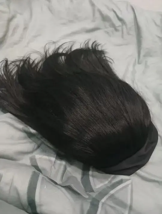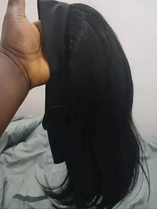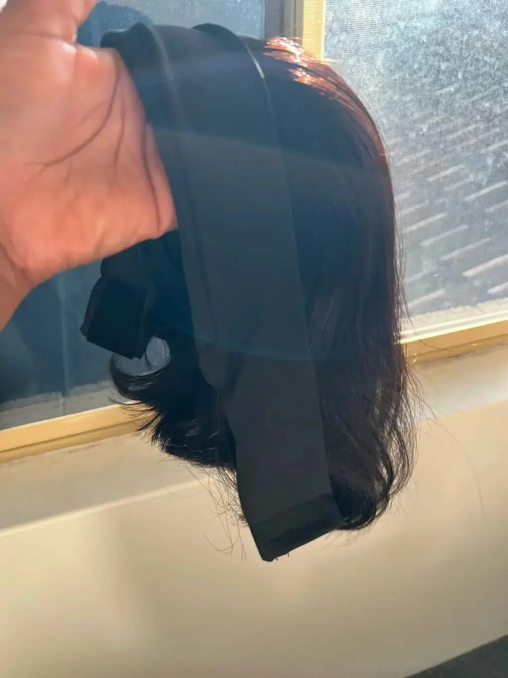 Texture detail of straight bob headband wig in natural light, highlighting silky strands and bounce. Side and back views of straight bob headband wig on mannequin, showing smooth cut and breathable cap structure. Frontal mannequin view of bob headband wig in straight natural color, featuring clean cut and full density. Step-by-step wear guide for bob headband wig showing how to prep, secure, and style with ease. Visual showing benefits of glueless bob headband wig including beginner-friendly fit and natural hairline. Inner cap details of bob headband wig showing elastic net, adjustable velcro strap, and four secure combs. Close-up front view of model wearing bob headband wig with sleek straight texture and black elastic headband.