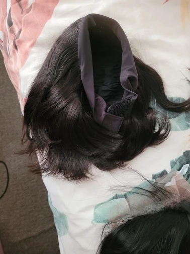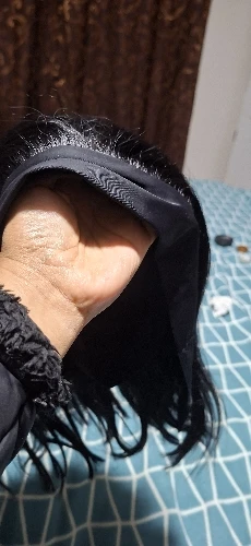 Close-up of cap interior showing breathable mesh, comb placements, and secure elastic structure on bob headband wig.